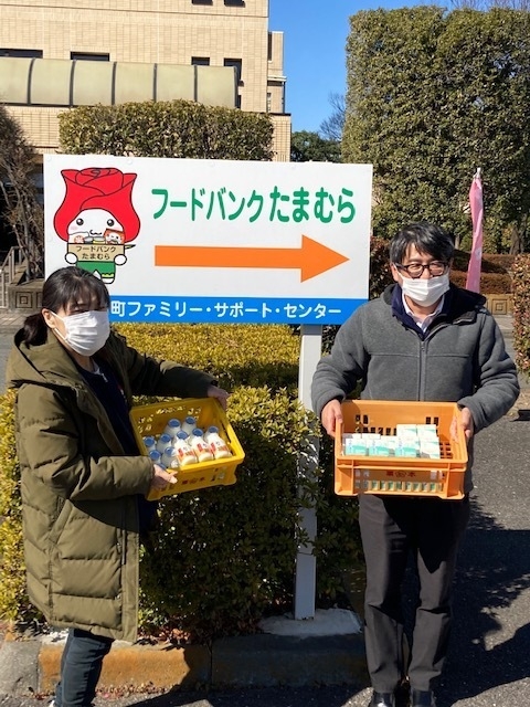 本日フードバンクたまむら様へ牛乳と飲むヨーグルトを各200本寄贈させていただきました。